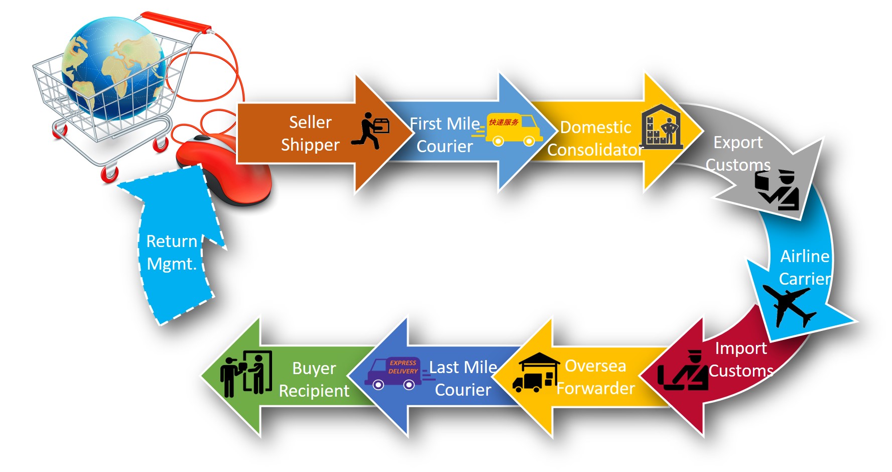 Traditional Global ecommerce logistics are time costly and complex, leaving a lot of room for error as different organizations are involved throughout the processes. The difference between traditional logistics and our GeG web services is that we encompass all master data, fundamental processes, and specific documents into one central repository.